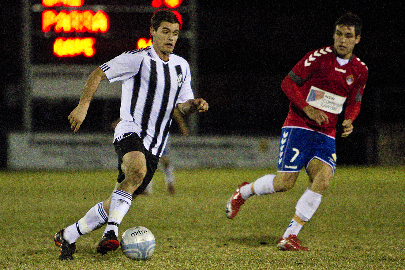 APIA Leichhardt tried to medy the situation a few minutes later when Andw Bevin found himself with ball at his feet, but unfortunately he tried to blast the ball home only to find that Dylan Mitchell was an unmoveable force on the Manly United line.