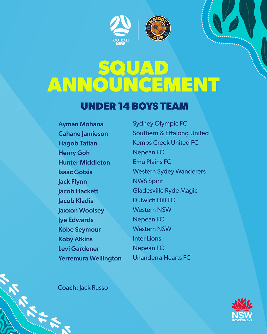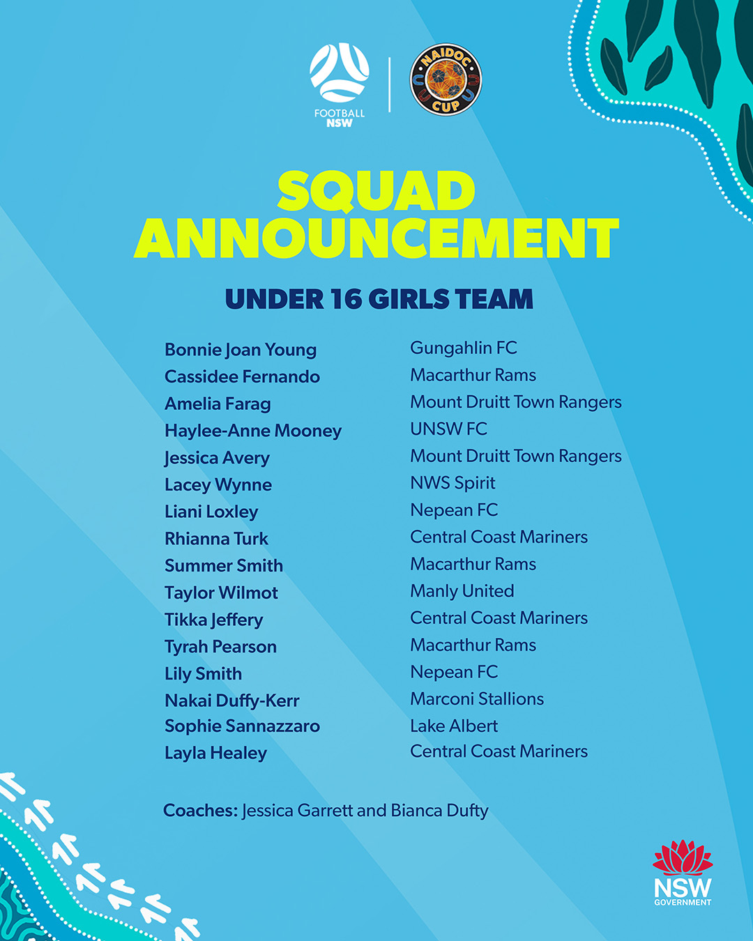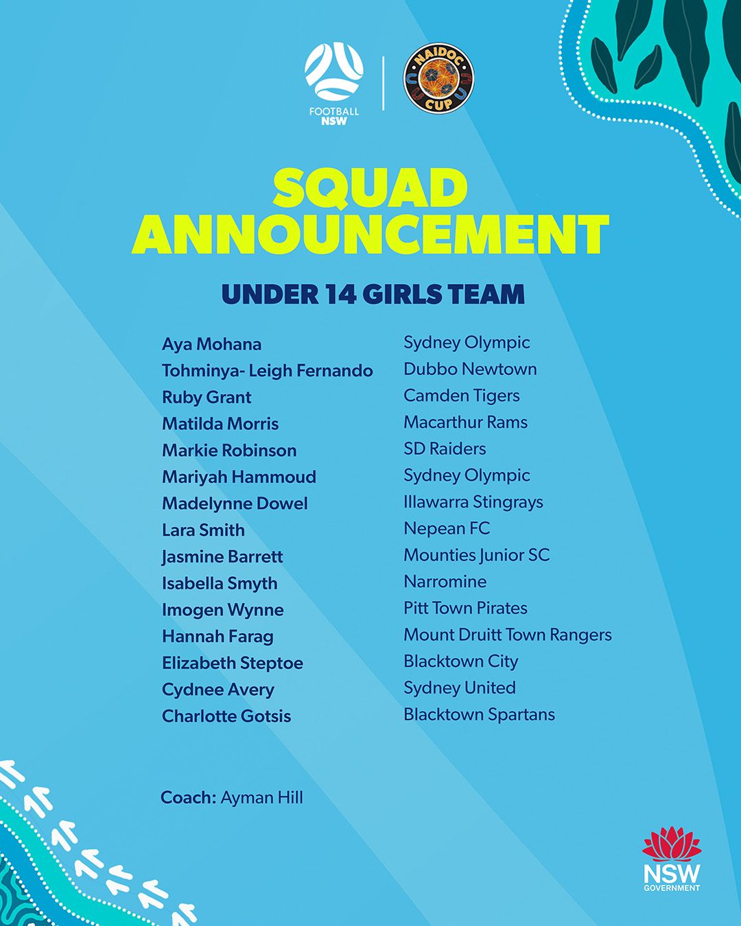 See full list of Football NSW NAIDOC Cup players below.